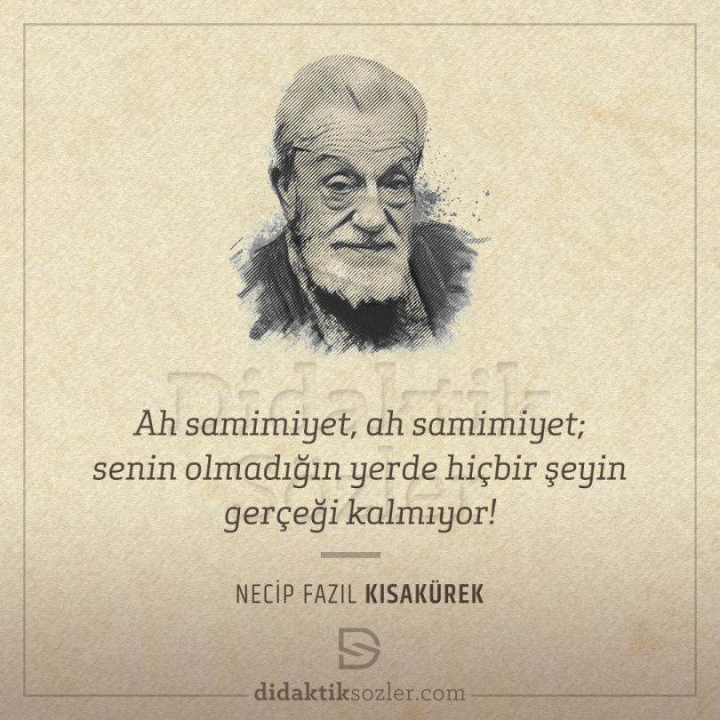 Üstad Necip Fazıl Kısakürek'in samimiyetin önemi hakkında ki o meşhur sözü...