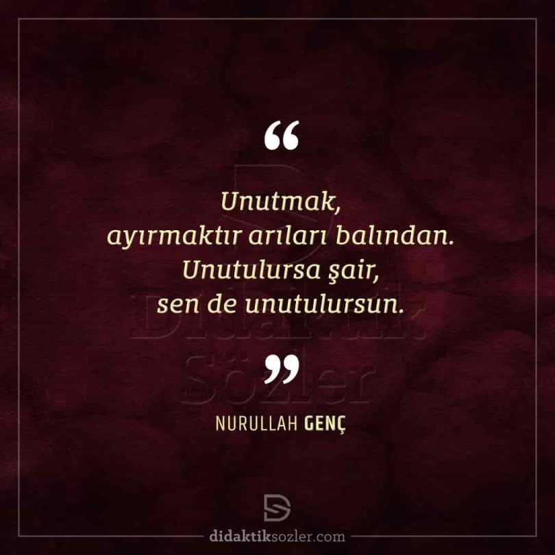 unutmak, ayırmaktır arıları balından unutulursa şair, sen de unutulursun.